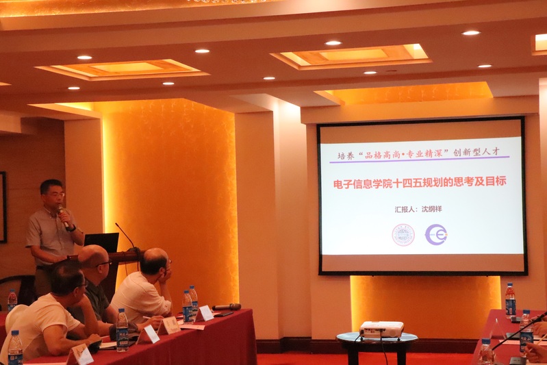 院长沈纲祥教授作了《电子信息学院"十四五"规划的思考及目标》的主题报告。首先,从学科专业、师资队伍建设、科学研究、人才培养等方面,介绍了学院现状及“十三五”取得的成绩。然后,他围绕高质量发展的创新、协调、绿色、开放和共享五个维度,构建了学院发展的优化模型,进而指出“教师个人发展”和“学院整体发展”的目标一致性和发挥每位教师潜能的关键性。最后,他解读了学院“十四五”规划的基本原则、发展目标、发展重点和主要任务,勾勒了学院的整体发展蓝图。