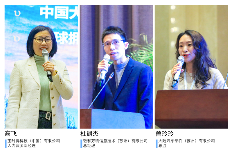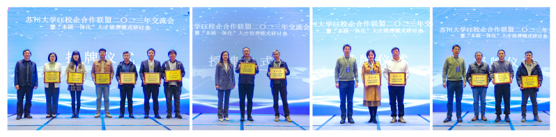 会议期间,苏州大学EE校企合作联盟为新加盟的会员单位授牌,宝时得科技(中国)有限公司人力资源部经理高飞女士、敦和万物信息技术(苏州)有限公司总经理杜熊杰先生和大陆汽车部件(苏州)有限公司总监曾玲玲女士作为会员单位代表进行了主题发言,与会其他代表结合公司情况和本次会议主题也展开了讨论交流,纷纷表示全力支持学校建设和发展,凝心聚力、同向同行,校企携手迈向美好的未来。