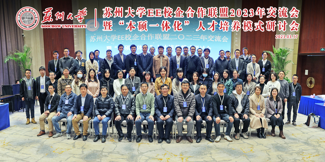 2023年3月17日,苏州大学EE校企合作联盟2023年交流会暨“本硕一体化”人才培养模式研讨会顺利召开,出席本次会议的有苏州大学党委常委、副校长洪晔、苏州市电子学会理事长赵鹤鸣、苏州大学国内合作发展处副处长刘子静、EE校企合作联盟成员单位代表、电子信息学院领导班子及教师代表。