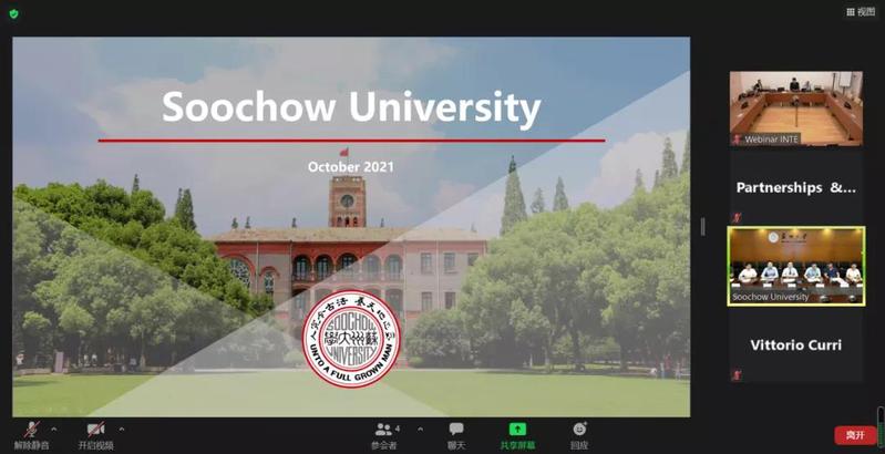 2020年6月22日,习近平主席在与欧洲理事会主席米歇尔和欧盟委员会主席冯德莱恩会见中强调双方将“打造更具世界影响力的中欧全面战略伙伴关系”。新冠肺炎疫情以来,我校国际交流工作坚持服务国家战略,服务学校“双一流”建设,与欧洲多国的高校和科研机构开展了一系列高层次和多维度的交流,持续推进了法国大使馆French Science Excellence奖学金合作项目、格勒诺布尔大学硕博联合培养项目、里尔大学纺织工程技术博士联合培养项目,丹麦技术大学绿色环保建筑设计项目,爱尔兰皇家外科医学院的药学合作项目等。我校与欧洲四校共同参与的Erasmus Mundus 博士联合培养项目SMDTex (Sustainable Management and Design for Textiles)也于近期圆满收官。该项目由欧盟文化与教育总署和中国国家留学基金委共同资助,自2013年运行以来,来自全球16个国家的33名博士生来我校交流学习并完成博士学位,成为我校中欧高层次国际合作交流的典范。本次会晤由电子信息学院进行前期对接,和都灵理工大学的全方位合作将进一步加强我校与欧洲高校和科研机构的深层次合作,为构建“中欧全面战略合作伙伴关系”贡献苏大力量。