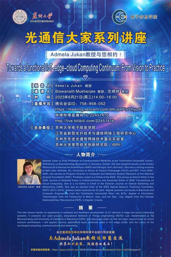 光通信大家系列讲座| Admela Jukan教授与您相约!