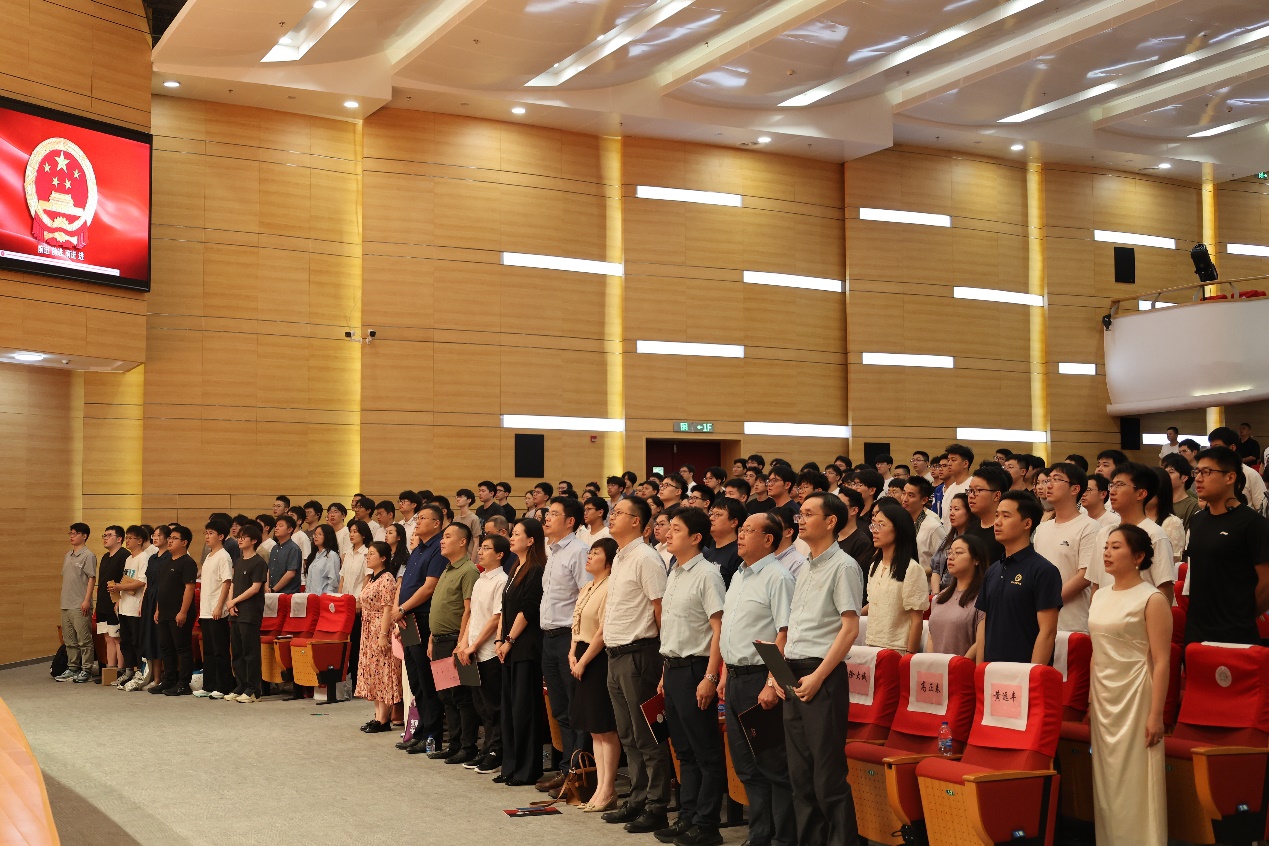 典礼开始前,存菊堂的大屏幕上滚动播放着学院师生们的祝福视频,一帧帧问答画面串联起在校生的不舍、毕业生的感恩、校友的真诚祝愿与老师们的殷切期望,伴随毕业生同学们步入礼堂,共同迎接庄严时刻的到来。在雄壮的国歌声中,学院2025届毕业典礼正式开始。