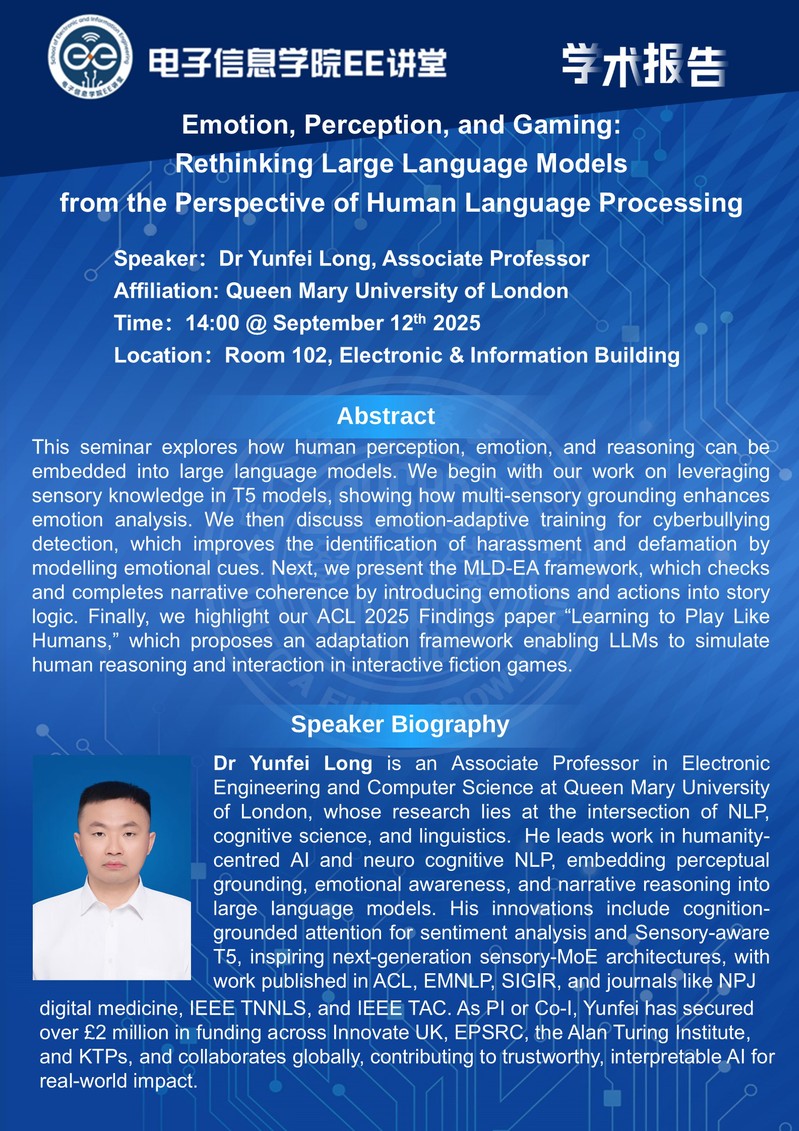 【学术报告】情感、感知与游戏:人类语言处理视角下的大语言模型再思考