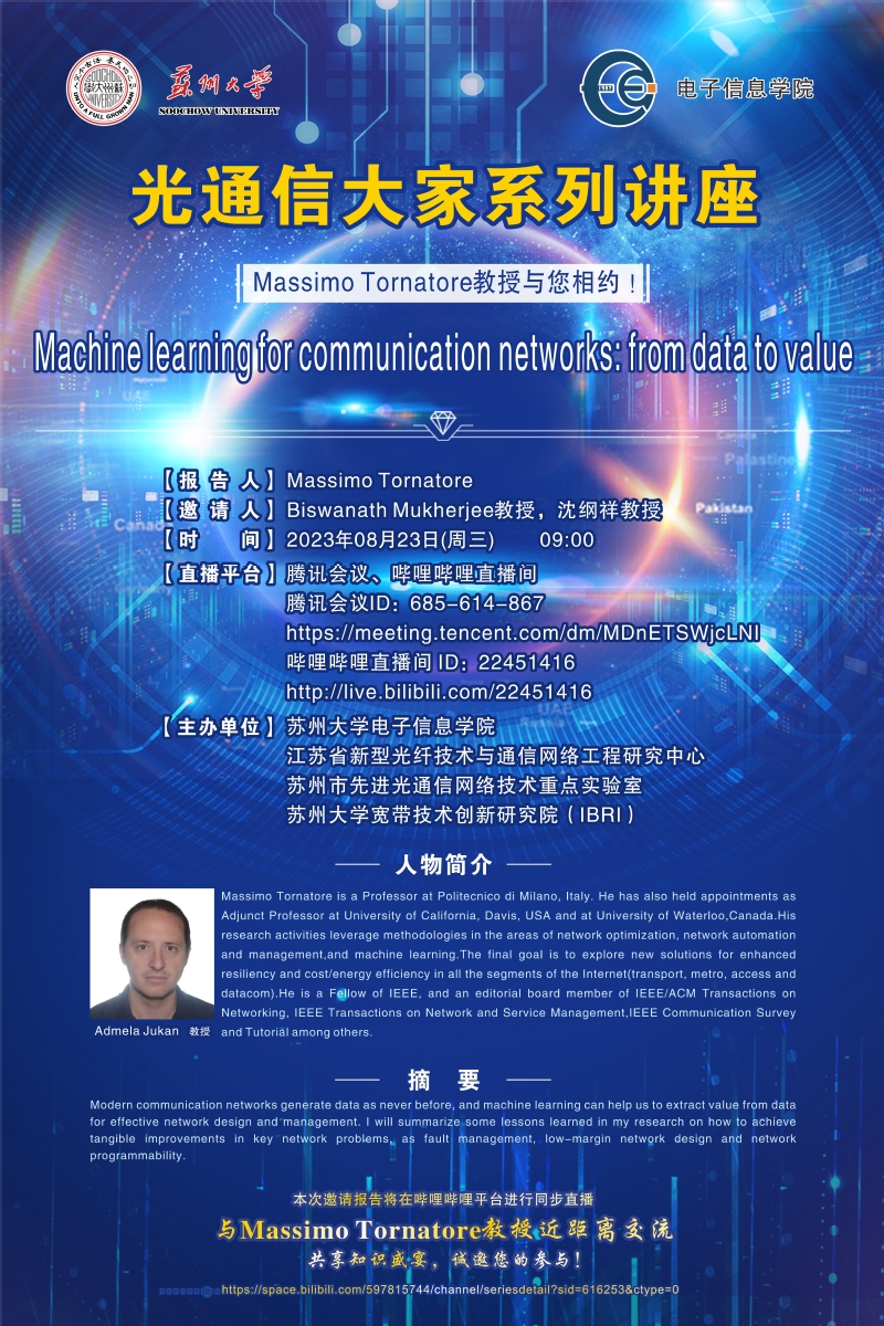 【光通信大家系列讲座】Massimo Tornatore教授与您相约!