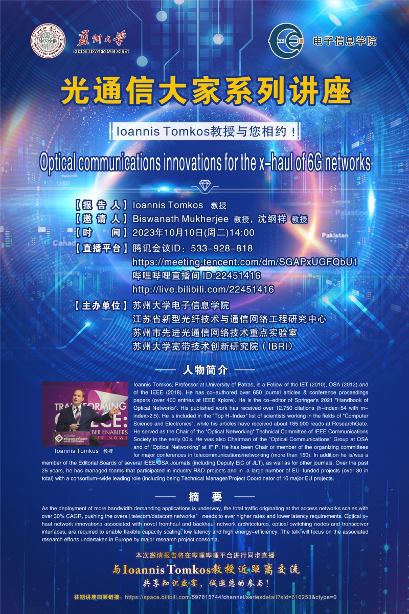 【光通信大家系列讲座】 Ioannis Tomkos教授与您相约!