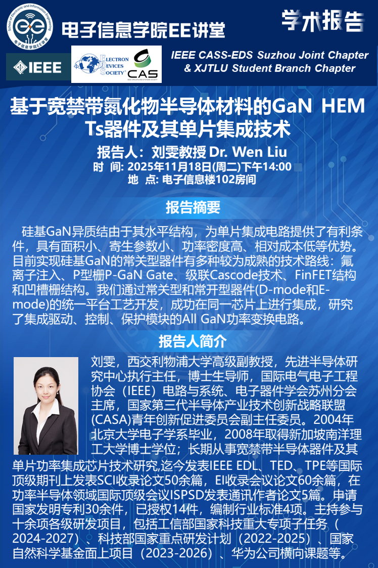 【学术报告】基于宽禁带氮化物半导体材料的GaN HEMTs器件及其单片集成技术