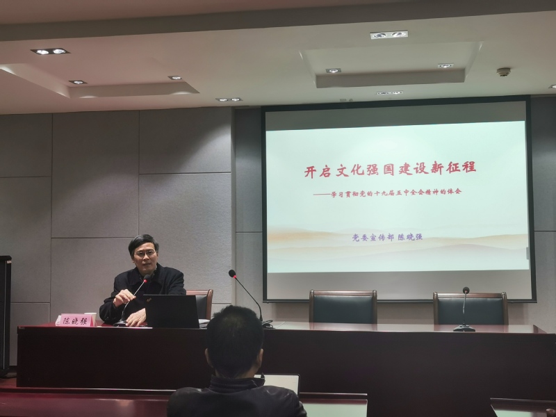 12月11日下午,电子信息学院学习贯彻党的十九届五中全会精神报告会在电子楼107召开。校十九届五中全会精神宣讲团成员、党委常委、宣传部陈晓强部长应邀来院作宣讲报告。报告会由电子信息学院党委书记胡剑凌教授主持。