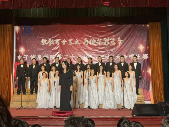 20级6班的《我的中国心》慷慨激昂,富有感情,歌词以其独特的形式表达了家国之思;17级代表的《我和我的祖国》,用时代经典为我们带来了一场视听盛宴;20级1班的《国家》唱出了“一心装满国、一手撑起家”的顶天立地;《我爱你中国》这首歌在20级4班的演唱下,唱响了新时代学子的爱国之心;19电信2班带来的《歌唱祖国》,融合出一种磅礴的气质,凝结了爱国之声、人民之心、民族之魂;19电科2班带来的合唱是《爱我中华》,完美的二重唱,五星红旗在礼堂内飘扬,动听的歌声萦绕在会堂;20级5班的《我们都是追梦人》,歌声有力振奋人心,激起了我们对祖国的自豪,最后的口号激扬奋进,展现了5班同学的拳拳爱国爱校之心;20级3班演唱的是《长江之歌》,他们洪亮的声音,响彻整个礼堂,扑面而来的磅礴气势,震撼了在场听众的心;《中国人》由18电信2班演唱,嘹亮的歌声、铿锵的节奏,唱出万千炎黄心中的富强梦;19电信1班的《天耀中华》,在投入的演唱里,我们深深领受着同学们对于祖国的诚挚祝愿。最后,苏州大学辅导员合唱团带来了《青春舞曲+在灿烂阳光下》,美妙的钢琴音、和谐的二重奏,他们的声音里充满着青春的笑声。在他们动听灵动的声音中,仿佛寒冷的冬日也透露出灿烂的阳光。
