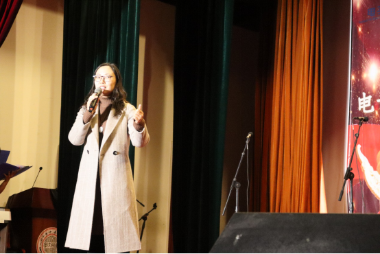 演出的最后,我们有幸请到中国国际合唱艺术研究会副会长、苏州工业园区职业技术学院副教授,程文文老师对本次大合唱比赛进行点评。程老师对同学们的精彩表现给予了极高的赞誉。同学们虽然不是音乐科班出身,但也同样唱得足够嘹亮,对“一二·九”精神新时代意义的理解足够深刻,非常不易!同时,在专业层面,程老师也提出了许多小建议,希望在明年的“一二·九”大合唱中能够百尺竿头,更进一步,再续华彩篇章。