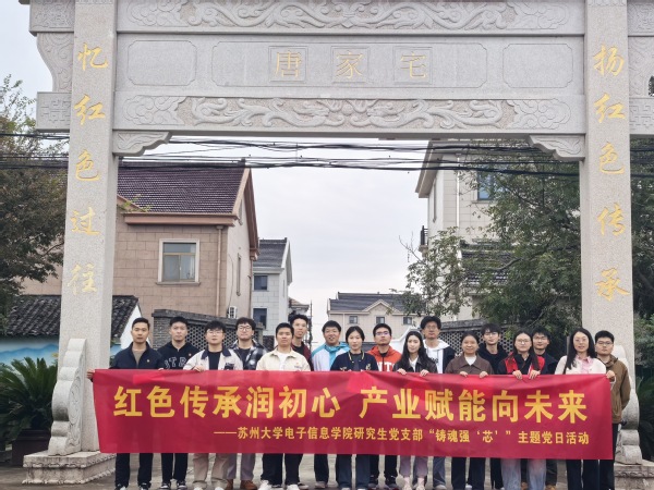 为深化党建引领,推动红色教育与专业实践深度融合,引导青年学子在行走中感悟初心使命、在交流中明晰发展方向,11月7日,学院研究生党支部赴太仓市璜泾镇开展“铸魂强‘芯’”主题党日活动。研究生信息通信党支部书记解雅漉、纪检委员赵梦飞带队,学院部分研究生党员、入党积极分子参与活动。