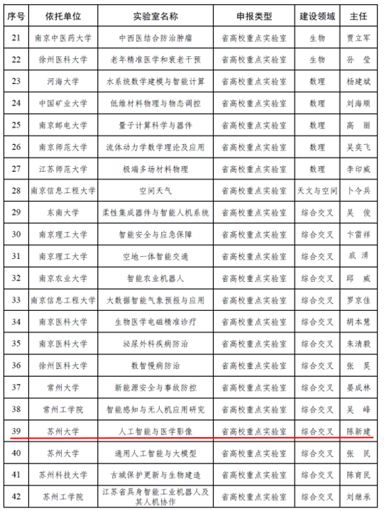 近日,江苏省教育厅公布高校重点实验室新增建设名单。我院牵头申报的“人工智能与医学影像实验室” 成功获批,充分体现了学院在智能医学影像分析领域的影响力,是我院高水平科研平台建设的又一标志性成果。