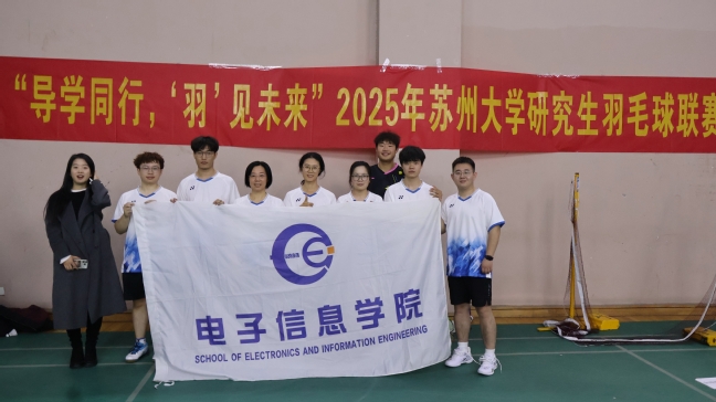 为深化导学情谊,锤炼团队精神,11月29日至30日,电子信息学院一支由师生共同组成的羽毛球队,参加了2025年苏州大学研究生羽毛球联赛,与来自全校22家基层研究生培养单位的23支队伍同场竞技。经过激烈角逐,我院队伍最终成功晋级八强并荣获优胜奖,充分展现了师生团结拼搏、昂扬向上的竞技风采与协作精神。