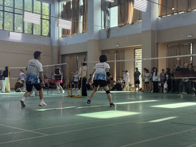 随后,在强手如林的八强淘汰赛中,我院队员展现了顽强拼搏的风貌。赛场对决紧张激烈,队员们全神贯注,网前扑救与后场扣杀精彩纷呈。师生间通过及时的交流与鼓励共同应对压力,虽然最终止步于此,但赛出了水平,赛出了风采,赢得了尊重。