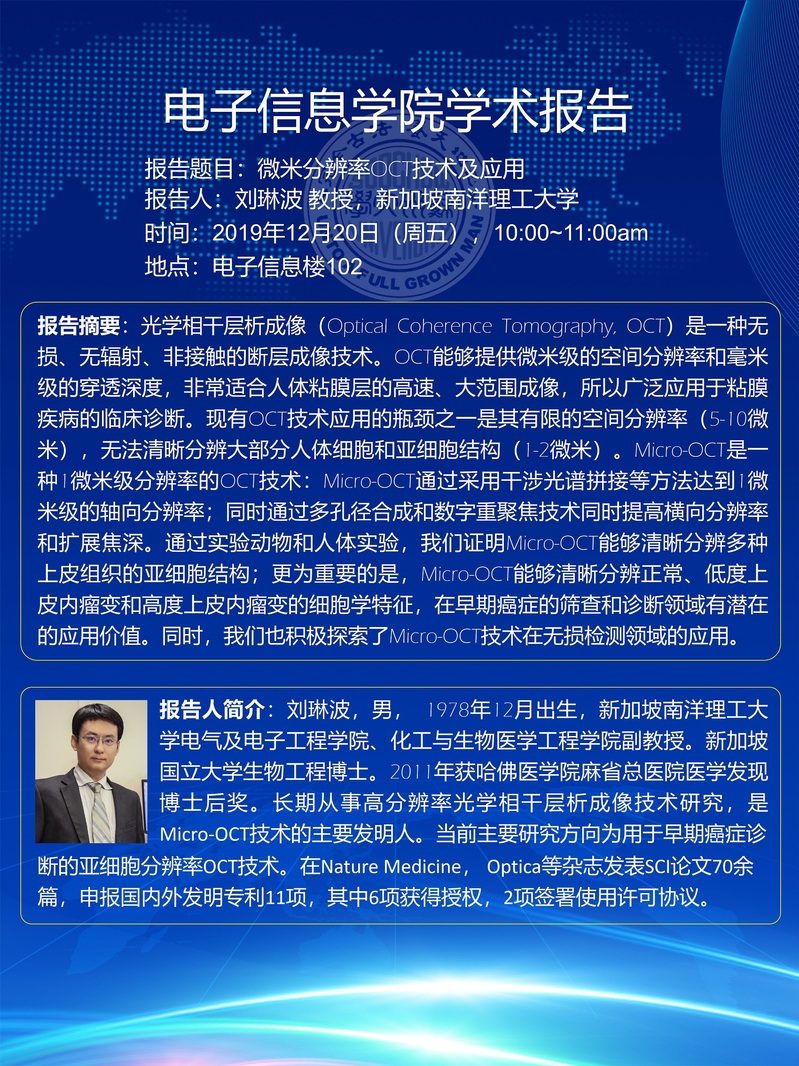 学术报告:微米分辨率OCT技术及应用