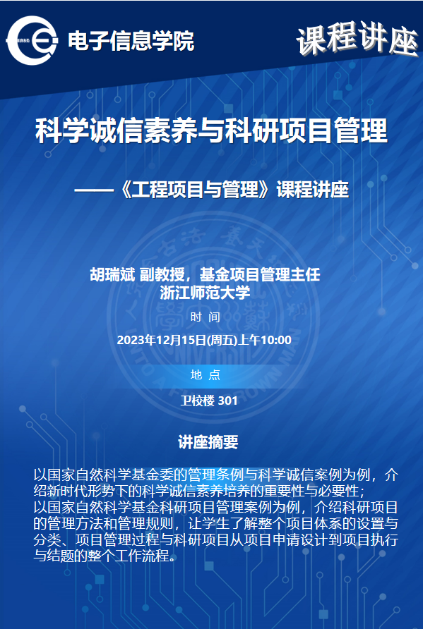 课程讲座:科学诚信素养与科研项目管理