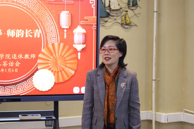 陈彦艳向全体前辈送上真挚的问候与新春祝福。她强调,学院今日的成绩凝结着老同志的关爱与奉献,学院将始终把离退休工作放在心头,努力让大家时时处处感受到学校和学院的温情与守护,并祝愿各位老师的退休岁月从容静好、健康安泰。同时,向与会教师代表介绍了学院新加盟的班子成员。