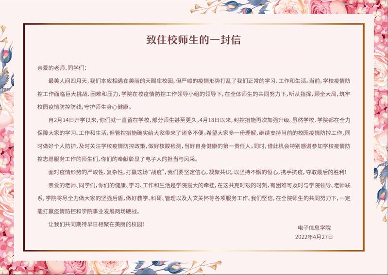 最后,院长沈纲祥就全力做好疫情防控工作提出了三点要求:一是充分认识当前疫情防控形势,统一思想,凝聚共识,严格遵守学校的各项疫情防控规定,服从指挥;二是重点摸排学生的实际需求,关心关爱学生,特别是研究生导师要关心关爱研究生;三是分析研判具体情况,统筹推进疫情防控和学院各项事业发展。