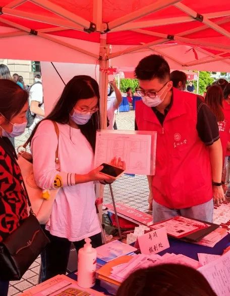 中午简单地用餐完毕后,第二批负责迎新工作的志愿者们也抵达了迎新现场,进行简单工作交接后,上午工作组的志愿者们暂时休息,迎新工作由下午组继续完成。
