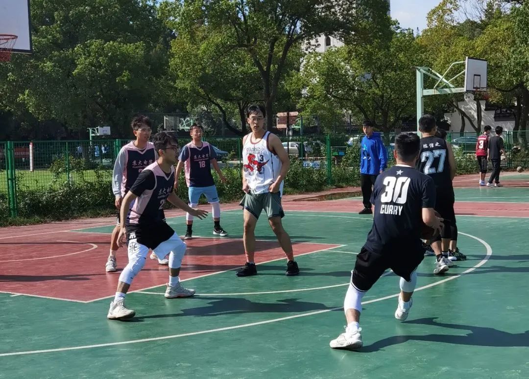 球场上,球员们通过不断地跑位和传导球,得到空位出手机会,中投、突破、三分,多点开花,切球、抢断、封盖体现了球员们在球场上的专注度,还有一次次的长传快攻,更是令人赏心悦目。球场下,观战的同学们不断给大家加油喝彩。