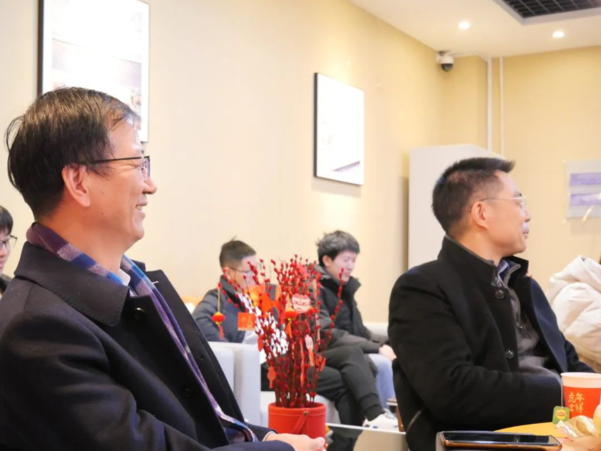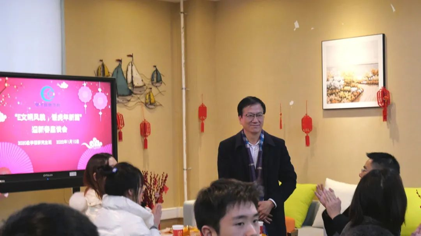 腊八已至,年味渐浓。2022年1月10日下午,电子信息学院在电子楼102举行以“E文明风貌,谱虎年新篇”为主题的迎新春班级座谈会。本次座谈会邀请到苏州大学党委常委、副校长姜建明老师,电子信息学院院长沈纲祥老师,副院长倪锦根老师,学院党委副书记黄远丰老师和研究生辅导员杨涵菲老师参加,与会的还有2020级学硕班同学,会议由班长黄夏馨主持。