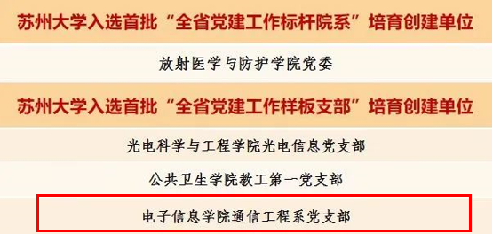 近日,省委教育工委办公室公布了首批全省党建工作标杆院系、样板支部培育创建单位遴选结果,学校分别有1个党委和3个党支部入选,我院通信工程系党支部入选“样板支部培育创建单位”。