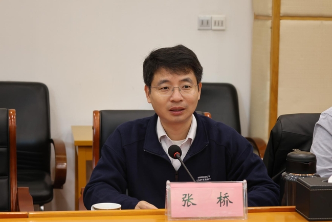 为进一步深化校企产学研融合,精准对接光通信产业发展需求,2026年4月10日上午,中兴通讯高级副总裁朱永兴、副总裁赵志勇一行应邀到访苏州大学。校长张桥出席活动,产业技术研究院院长田天、校长办公室副主任(主持工作)蒋宇,以及电子信息学院院长沈纲祥、党委书记陈彦艳和学院教师代表共同参加本次活动。