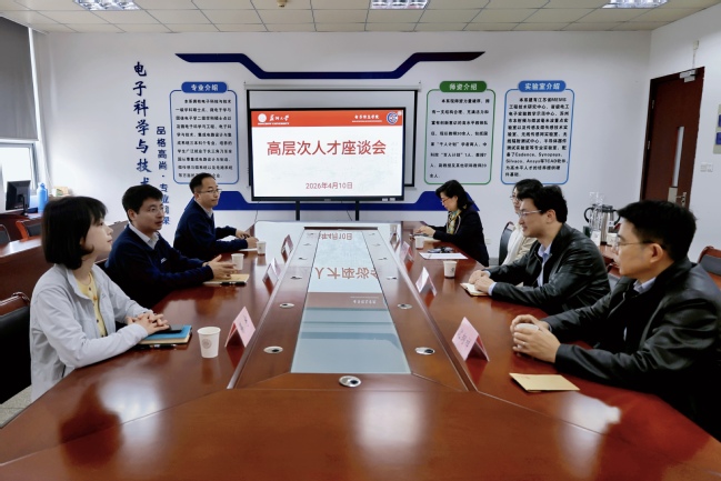 2026年4月10日上午,校长张桥带队赴电子信息学院看望特聘教授代表。校长办公室副主任(主持工作)蒋宇、督查办公室副主任王龙,以及学院院长沈纲祥、党委书记陈彦艳共同参加活动。