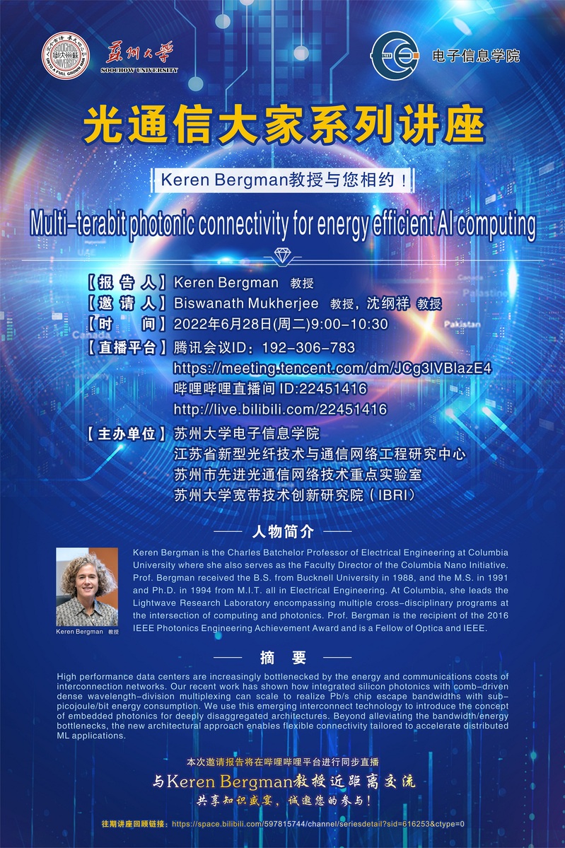 光通信大家系列讲座| Keren Bergman教授与您相约 !