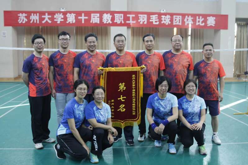 我院羽毛球队参加了苏州大学第十届教职工羽毛球团体比赛,赛场上运动健儿们机智地排兵布阵,奋力拼搏,突破性地杀入小组赛,最终取得了小组第七名的好成绩。