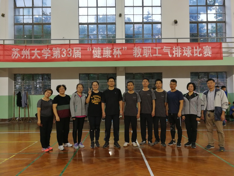 我院气排球队参加了为期两周的苏州大学第33届“健康杯”教职工气排球比赛,对阵机关、后勤、能源、数学、药学、传媒代表队,健儿们努力拼搏,离小组赛近在咫尺,相信运动员们不会气馁,争取明年取得佳绩。本次比赛分工会荣获了优秀组织奖。