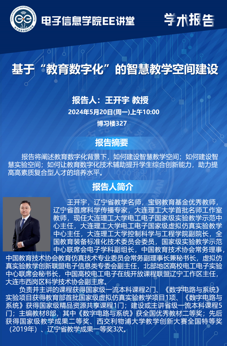 【学术报告】基于”教育数字化”的智慧教学空间建设