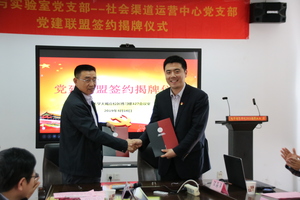 首先由电信公司社会渠道运营中心党支部书记毛心悦讲话,他简要地介绍了支部党建工作的情况,由衷的希望通过党建联盟实现组织联建、党员联学、活动联办、合作共赢。随后,电子信息学院办公室与实验室党支部书记肖圣兵讲话,他从联建意义、联建要求和联建路径三方面谈了体会和思路,希望每个党员发挥联建平台作用,不断提升党性修养,发挥表率示范作用,为强化支部建设、推进事业发展做出新的更大的贡献。
