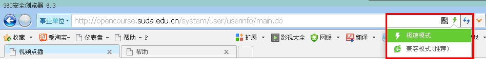 “360浏览器”播放时,把“兼容模式(推荐)”改成“极速模式”,如图: