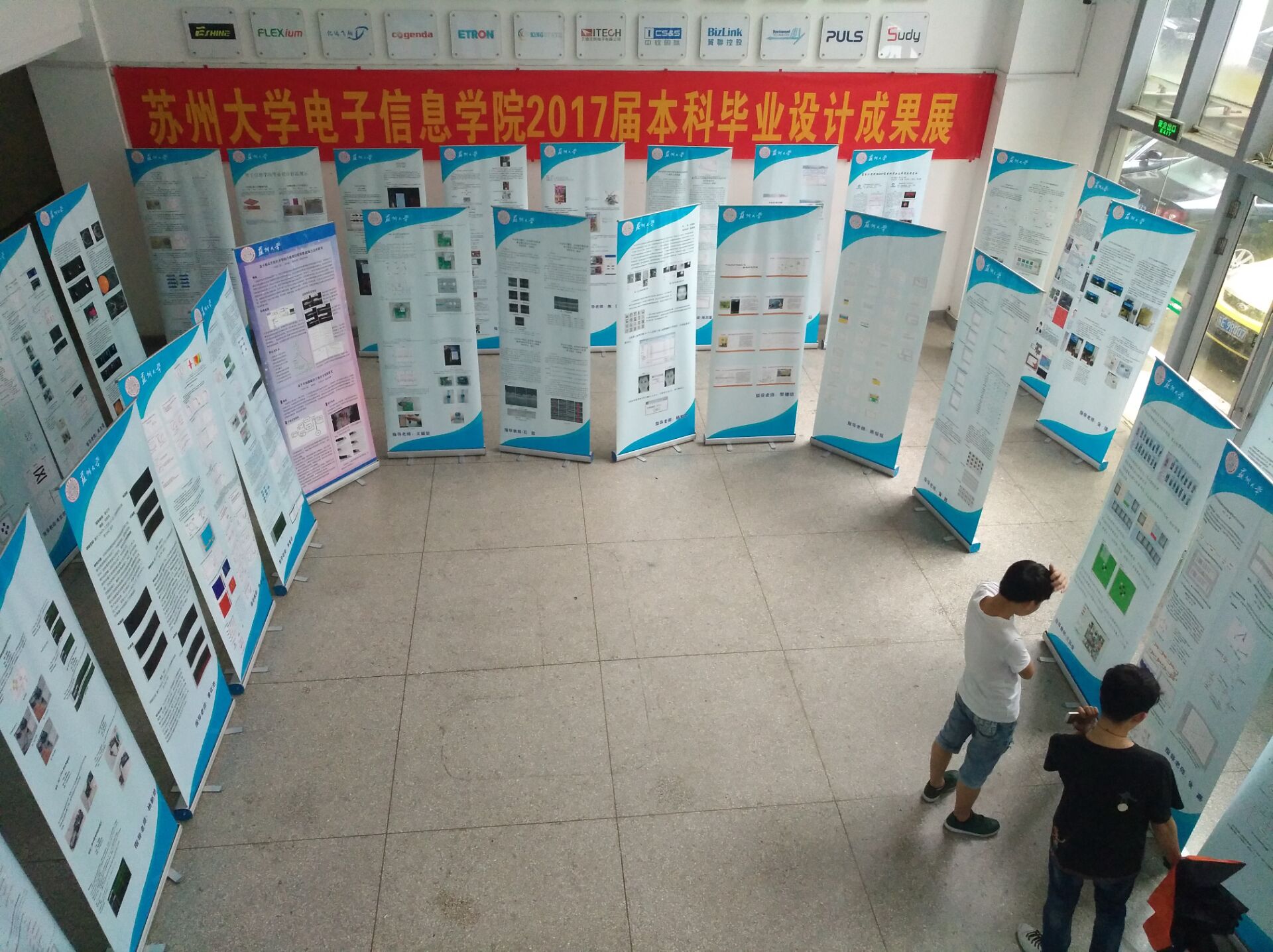 5月23日 ,电子信息学院在电子楼负一楼大厅举办了为期一周的2017届本科生毕业设计成果展。我院电子信息工程、通信工程、信息工程、微电子科学与工程和电子科学与技术五个专业学生的近200幅作品参与汇展。