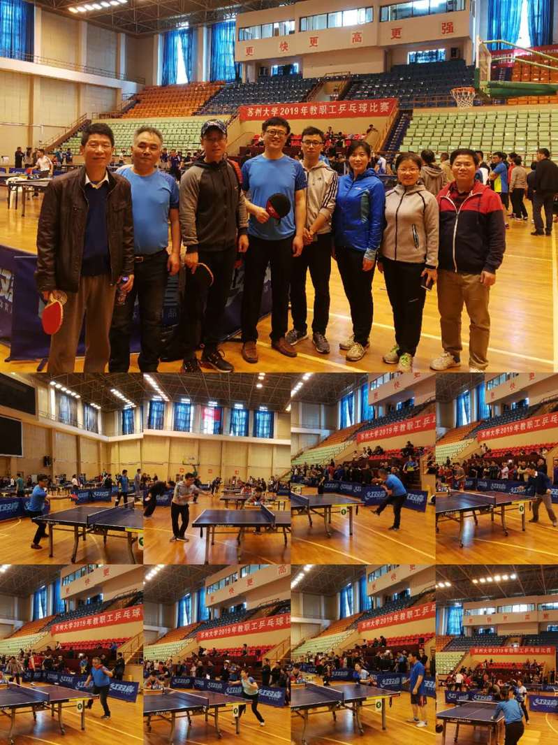 苏州大学2019年教职工乒乓球比赛于2019年4月27日在东校区体育馆举行。我院派出八名教师(六男两女)参加此次比赛,首轮对决机关、材化部和光电学院代表队。