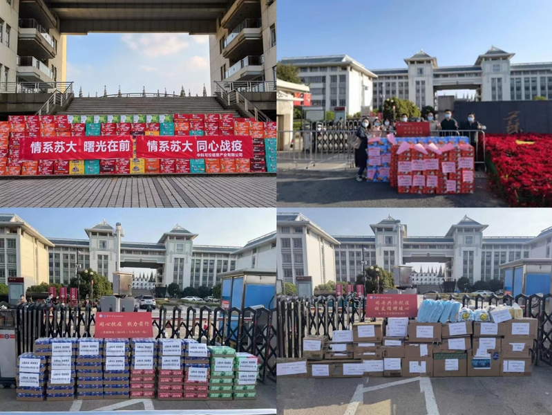 纵然山河有恙,也不敌世间盛情。学校突如其来的疫情也牵动了许多校友及校外爱心企业的心,他们在得知消息后,第一时间联系学院询问物资需求,迅速在校外集结力量、组建小分队,停下原本手头的工作,奔赴各商超采购,将防疫物资、食品等急需用品送到校园,用实际行动展现“一方有难、八方支援”的大爱情怀,将点滴爱心汇聚成河,为共克时艰积蓄了磅礴力量。