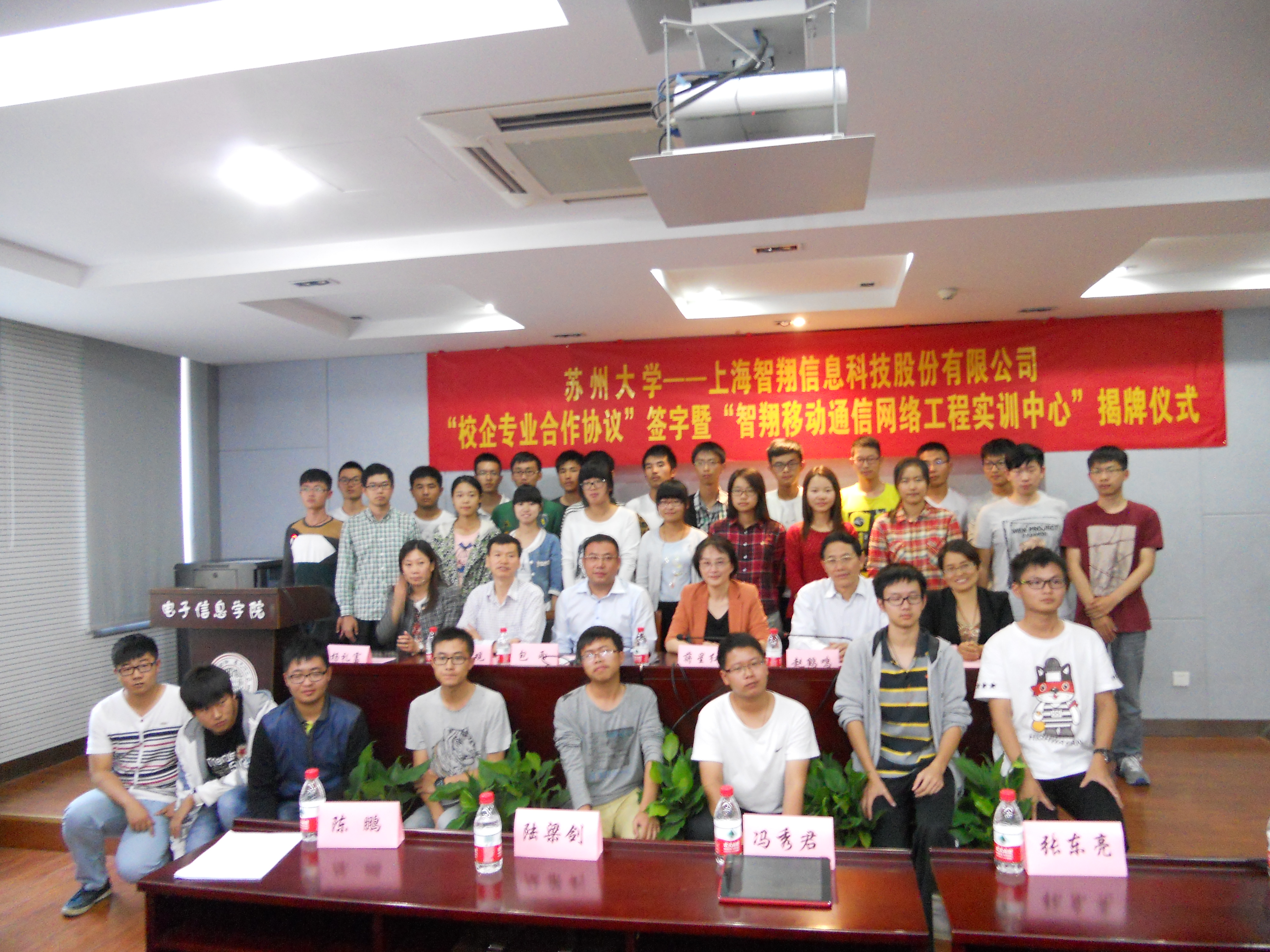 苏州大学副校长蒋星红教授揭牌后代表学校对合作单位表示欢迎和感谢,对双方合作协议的签署表示祝贺。并表示,苏州大学将会对校企双方的合作全力支持,也希望企业以给学生提供实习就业机会的同时,积极参与教学改革,对我们的人才培养工作提出建议;学校将以企业的需求为导向认真修订我们的人才培养方案;并提倡同学们早进企业,早接触项目,让毕业生与企业无缝对接,实现学校、企业、学生三赢。