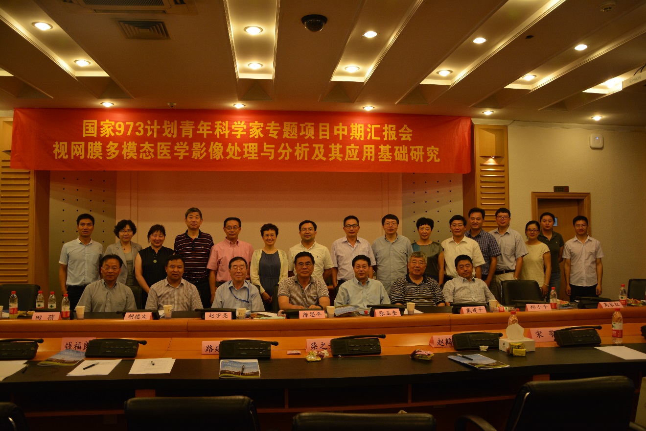 2015年8月1日,国家973计划青年科学家专题项目“视网膜多模态医学影像处理与分析及其应用基础研究”中期总结会在苏州大学红楼217召开。中国科学院大连化学物理研究所张玉奎院士、苏州大学柴之芳院士、北京天坛医院戴建平院长、深圳大学陈思平教授、科技部基础研究管理中心副处长闫金定、国家自然科学基金委信息学部张兆田副主任、国家自然科学基金委熊小芸处长,以及我校科学技术与产业部科技处副处长钱福良、电子信息学院院长赵鹤鸣等十多位专家参加了总结会。路建美副校长会见了张院士等专家,总结会由特聘教授陈新建主持。