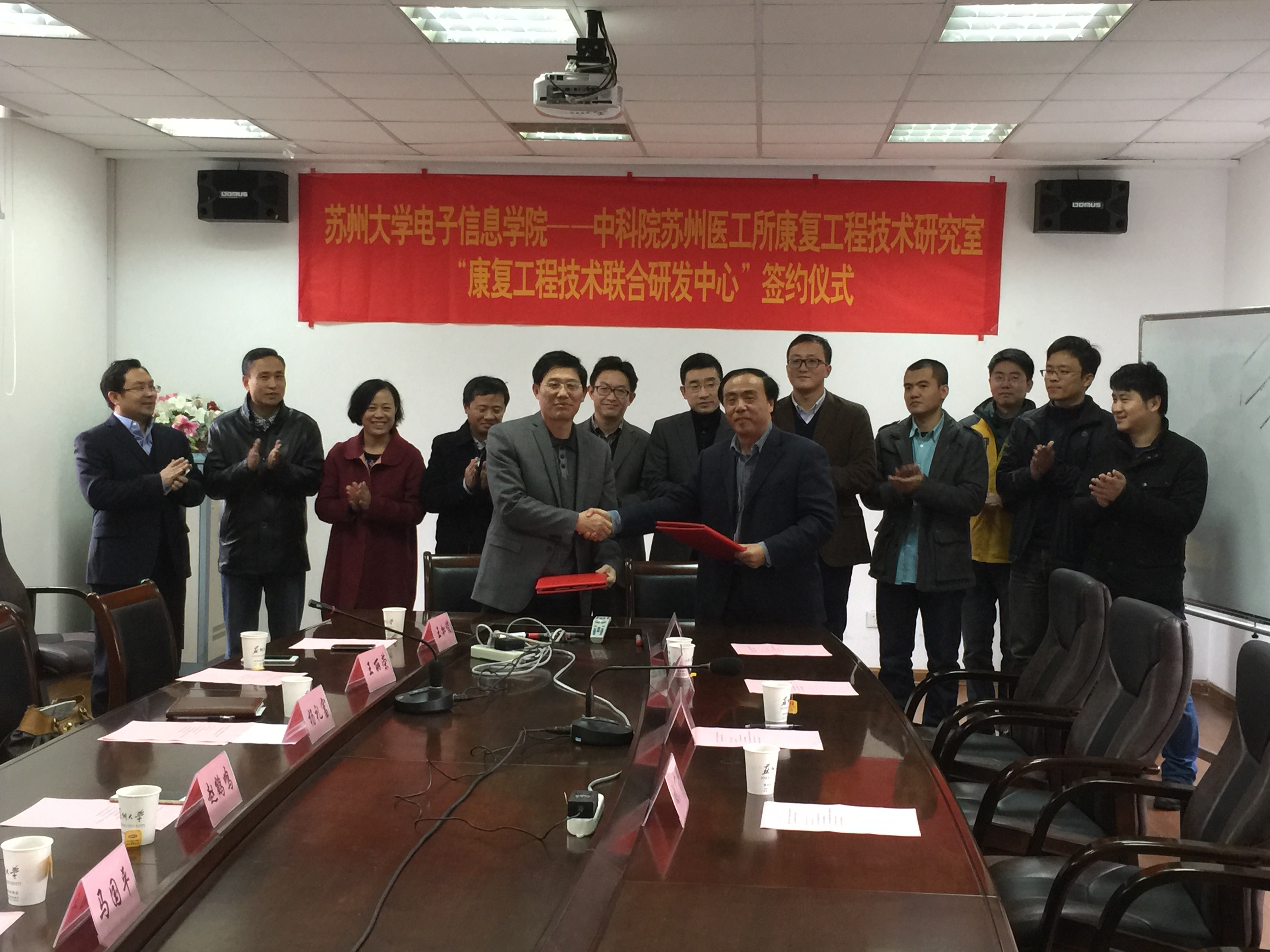 12月1日,中国科学院苏州生物医学工程技术研究所与苏州大学全面合作建立“康复工程技术联合研发中心”。签约仪式在苏州大学电子信息学院举行。