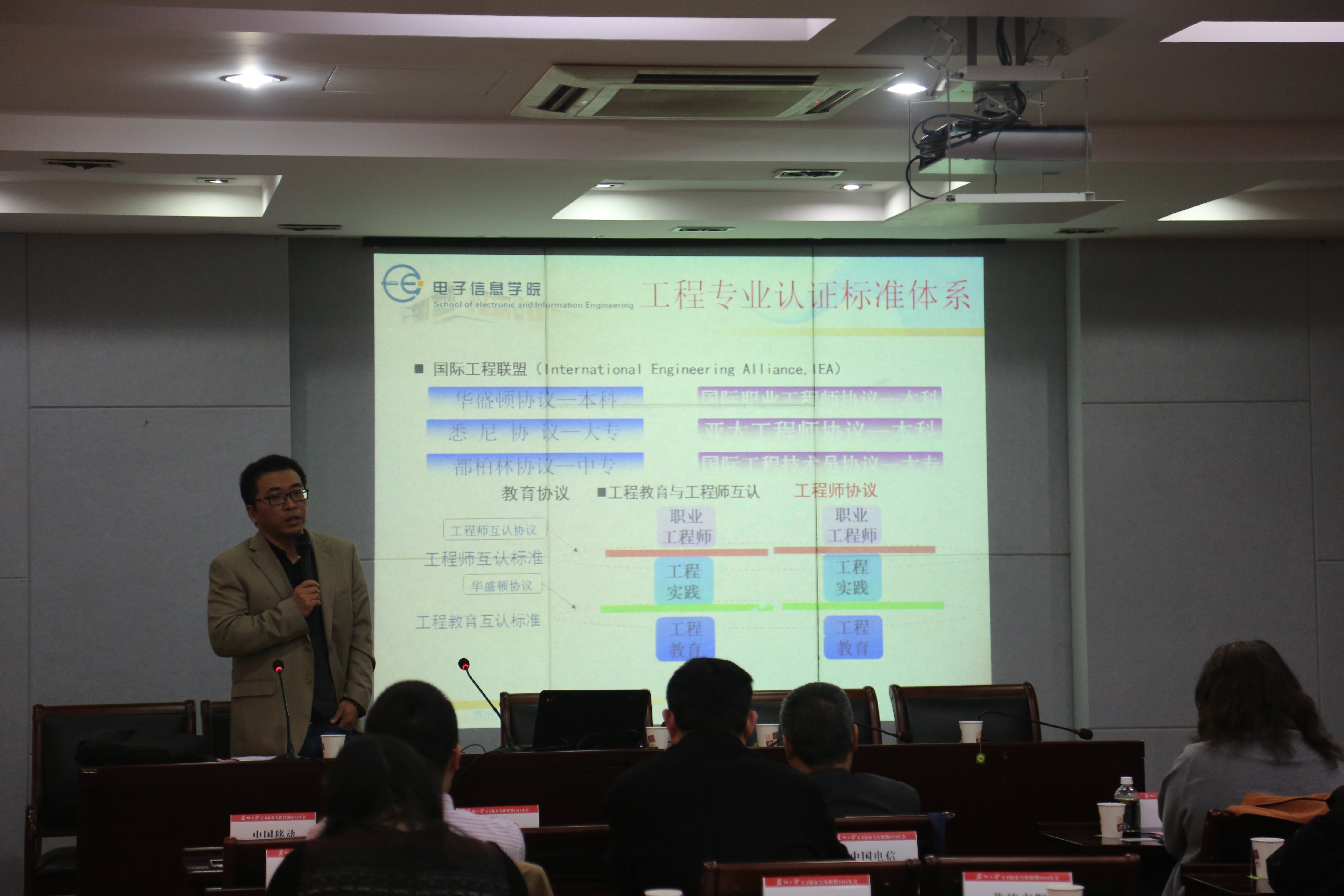 3月18日下午,苏州大学EE校企联盟2016年会暨通信工程、微电子科学与工程专业认证及人才培养专题研讨会在电子信息楼107会议室隆重举行。苏州大学教务部教学质量与资源管理处处长晏世雷、电子信息学院院长赵鹤鸣、院党委书记徐群祥以及Altium公司、康普通讯技术(中国)有限公司、超威半导体(AMD)公司等四十多家联盟企业代表应邀出席。会议由徐群祥主持。