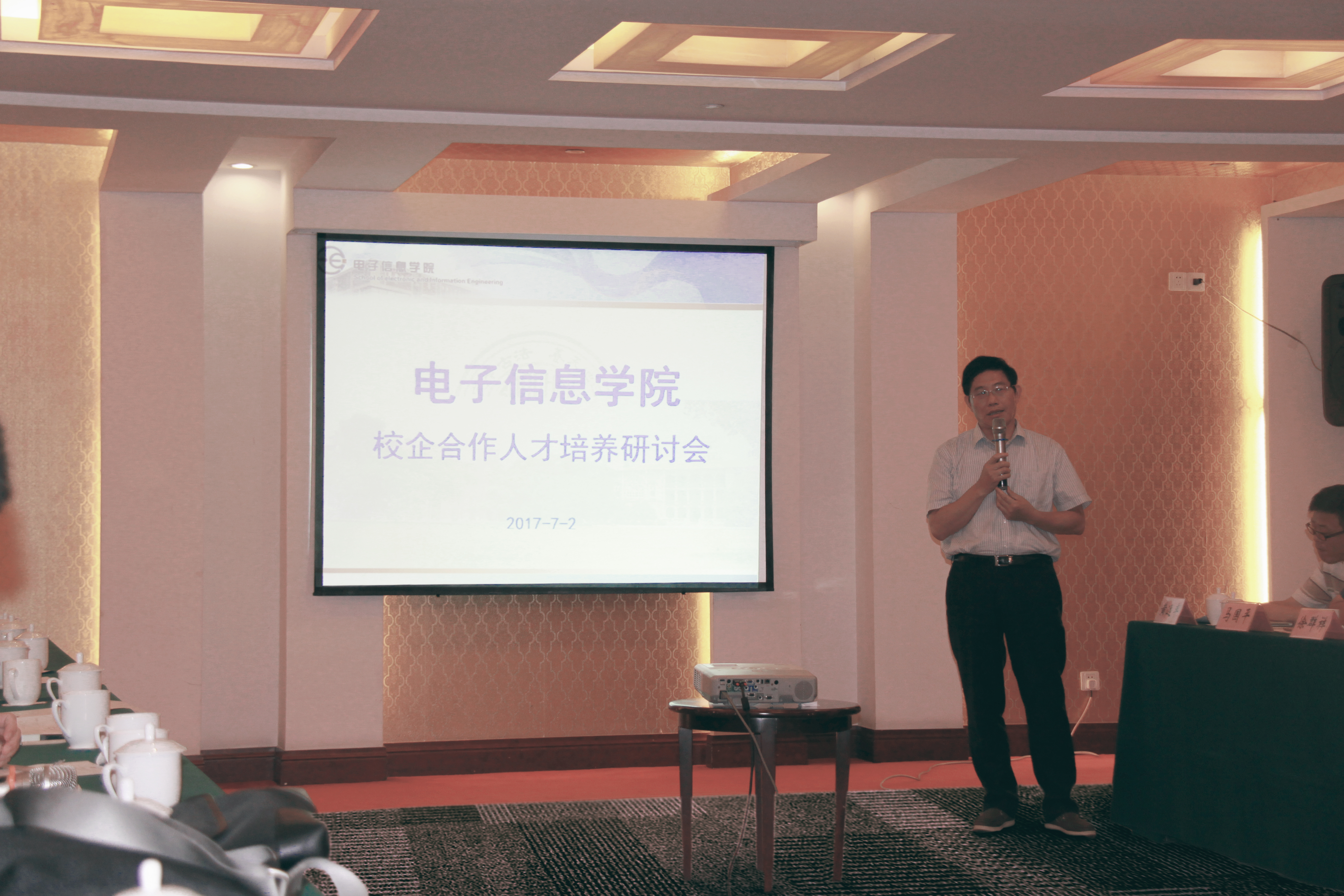7月2日,电子信息学院召开校企合作人才培养研讨会,院领导、全体教授、部门与各系、科研团队负责人及EE校企合作联盟单位代表等参加了研讨会。会议由院长赵鹤鸣教授主持。