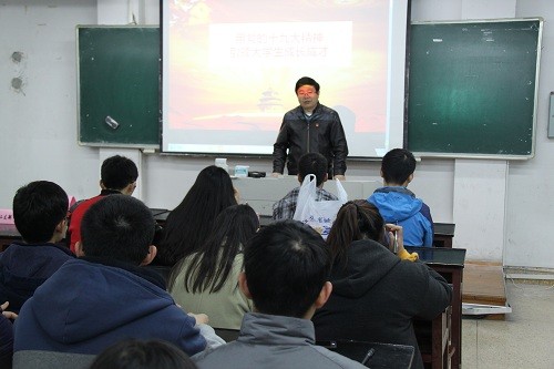 随后,徐群祥老师分析了十九大精神与大学生成长成才之间的逻辑关系,十九大报告指出“青年兴则国兴,青年强则国强,青年一代有理想、有本领、有担当,国家就有前途,民族就有希望”,由此可以看出青年一代在实现中华民族伟大复兴中的作用所在。而青年大学生是青年一代中的高学历、高知识层次群体,在当前的高科技发展日新月异的时代背景下,所担当的使命,应发挥的作用更为关键。作为当代大学生,应以十九大精神为指引,在自身的人生发展历程中,用坚定的信念照亮自己的人生旅程,用正确的价值观指导自己的生活,用闪光的汗水成就栋梁之材,用伟大的中国梦激扬青春梦。