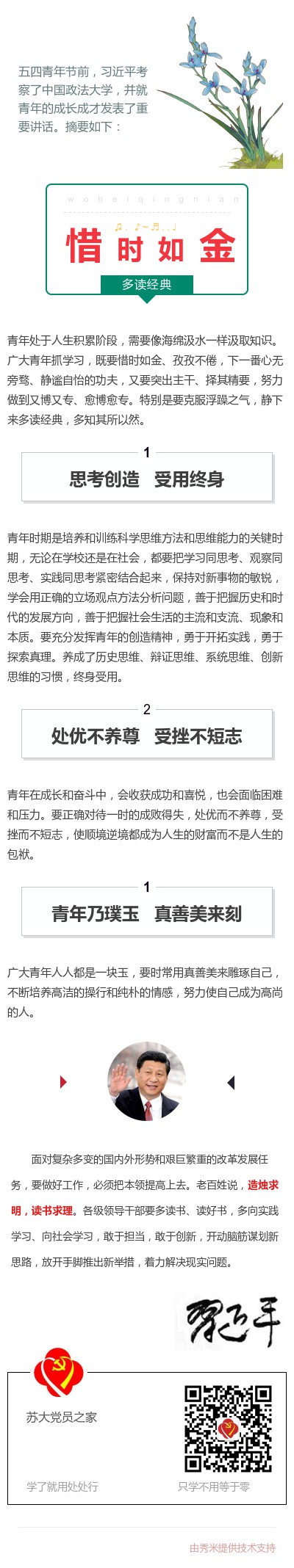 青年在成长和奋斗中,会收获成功和喜悦,也会面临困难和压力。要正确对待一时的成败得失,处优而不养尊,受挫而不短志,使顺境逆境都成为人生的财富而不是人生的包袱。
