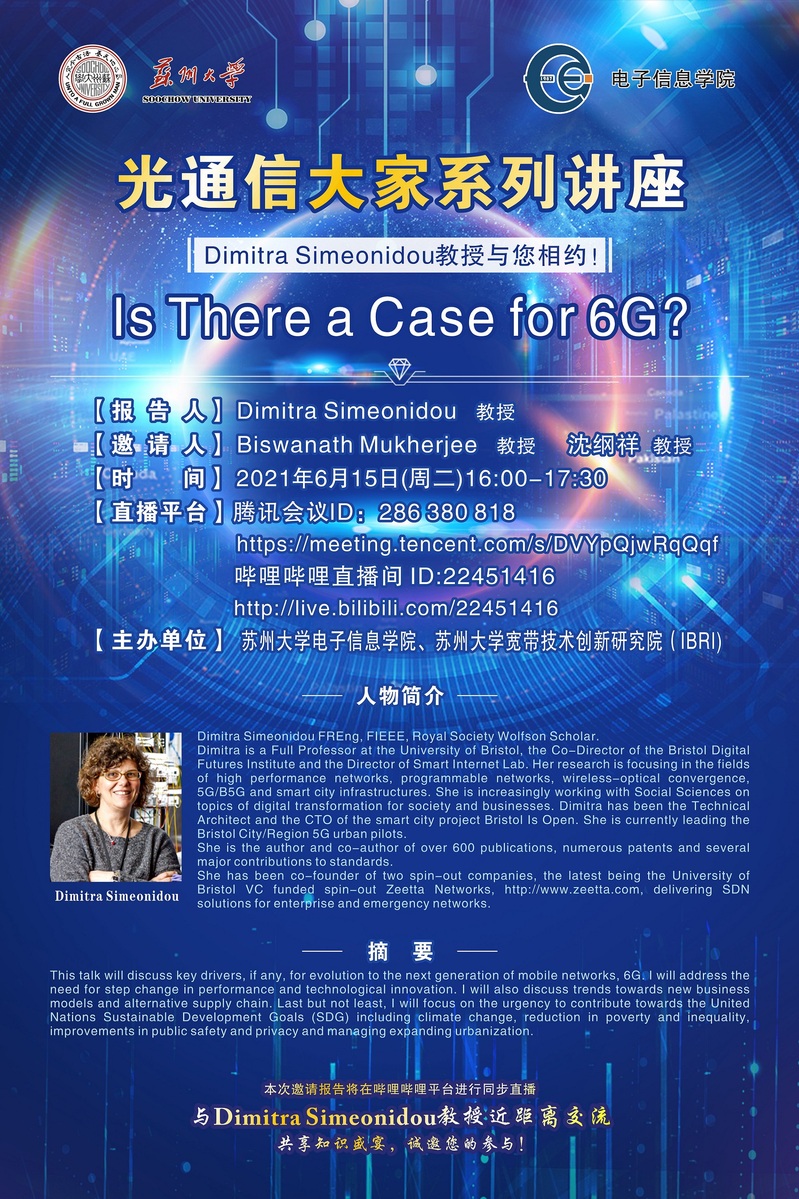 光通信大家系列讲座| Dimitra Simeonidou教授与您相约 !