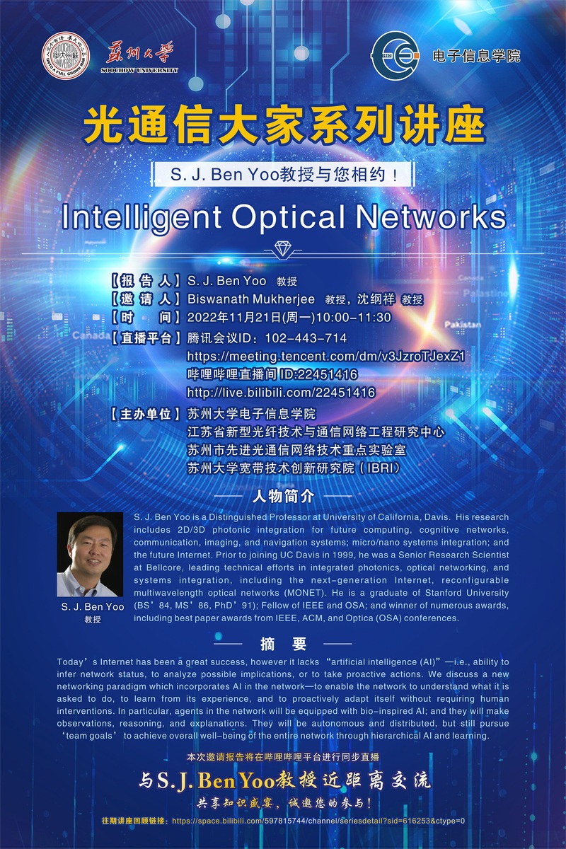 光通信大家系列讲座:S. J. Ben Yoo教授与您相约 !