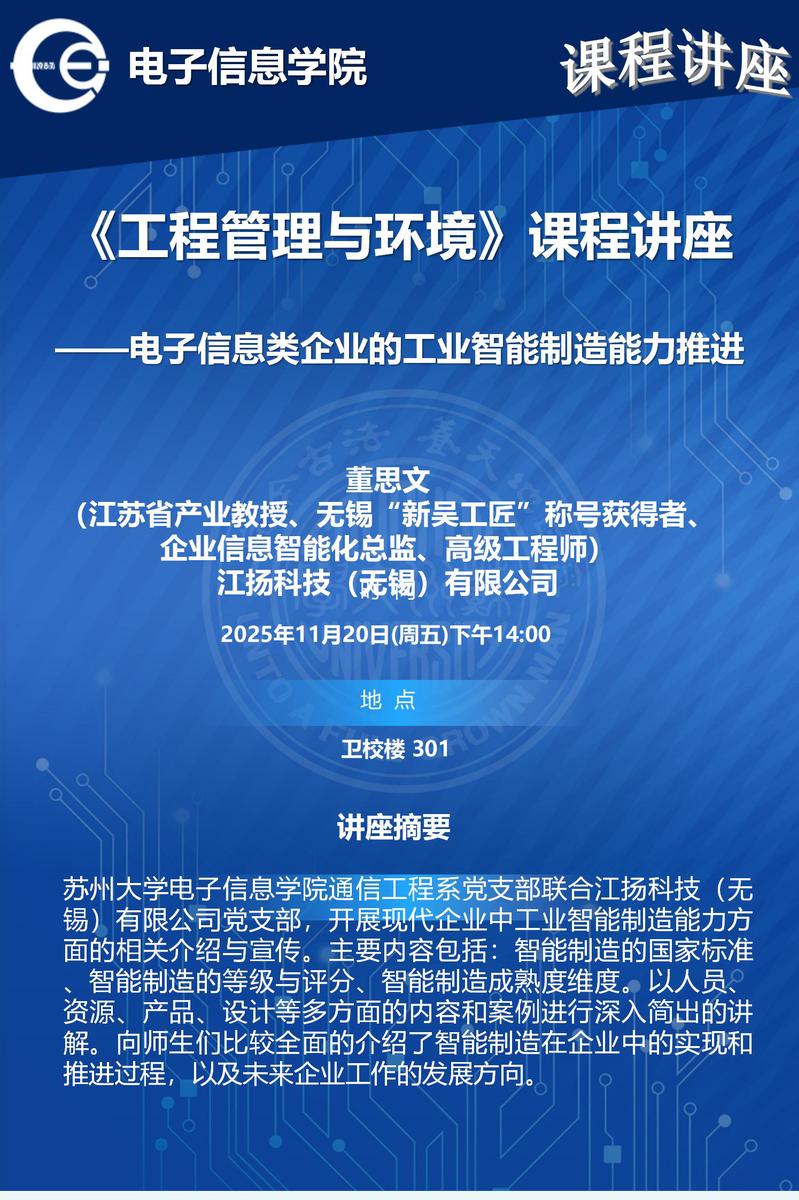 课程讲座:电子信息类企业的工业智能制造能力推进