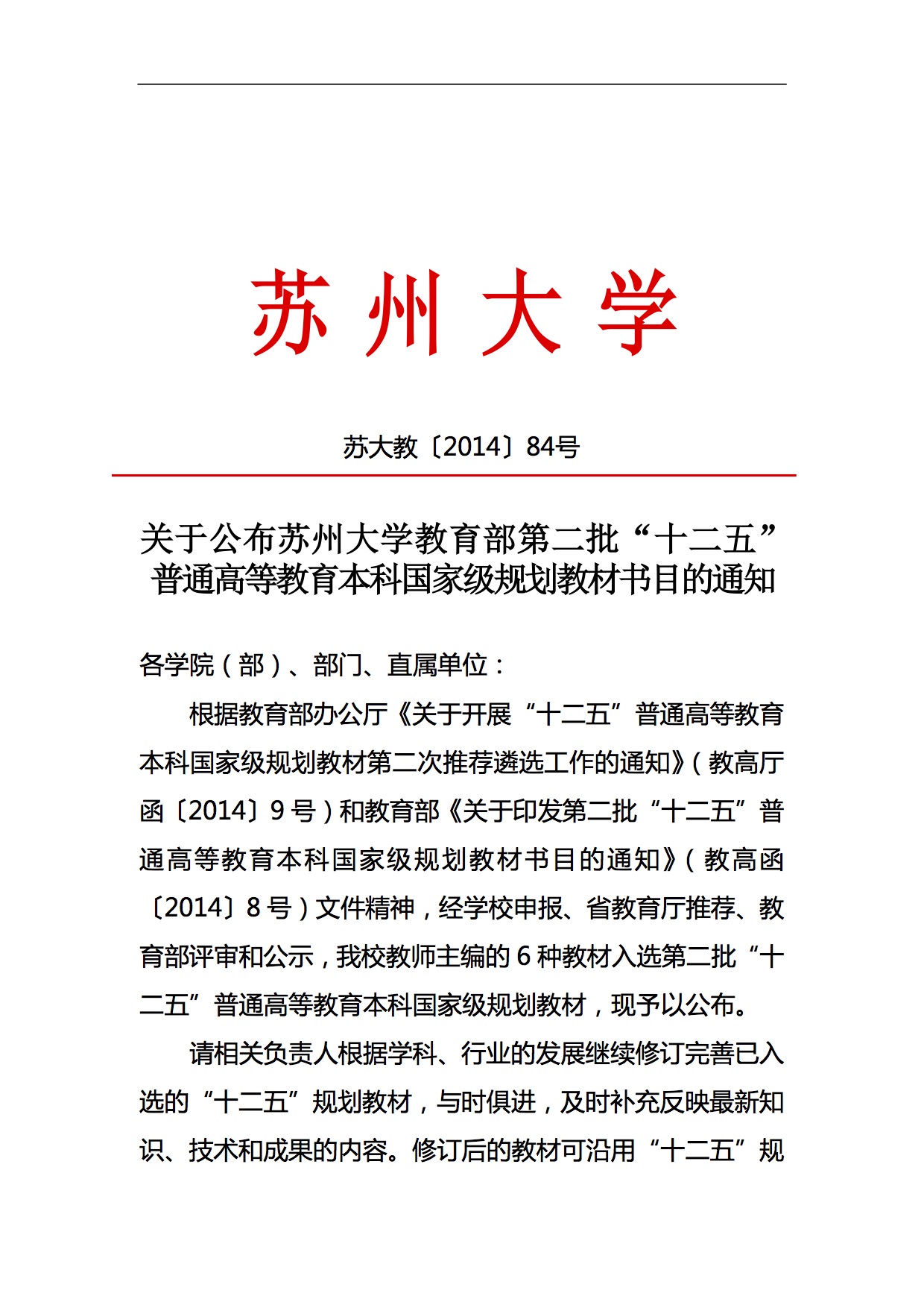 教育部第二批“十二五”普通高等教育本科国家级规划教材