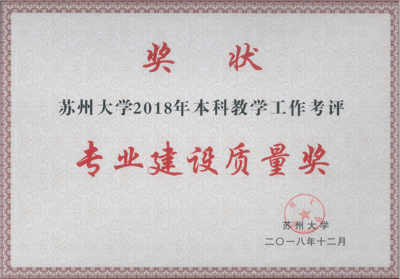 2018年荣获苏州大学本科教学工作考评专业建设质量奖