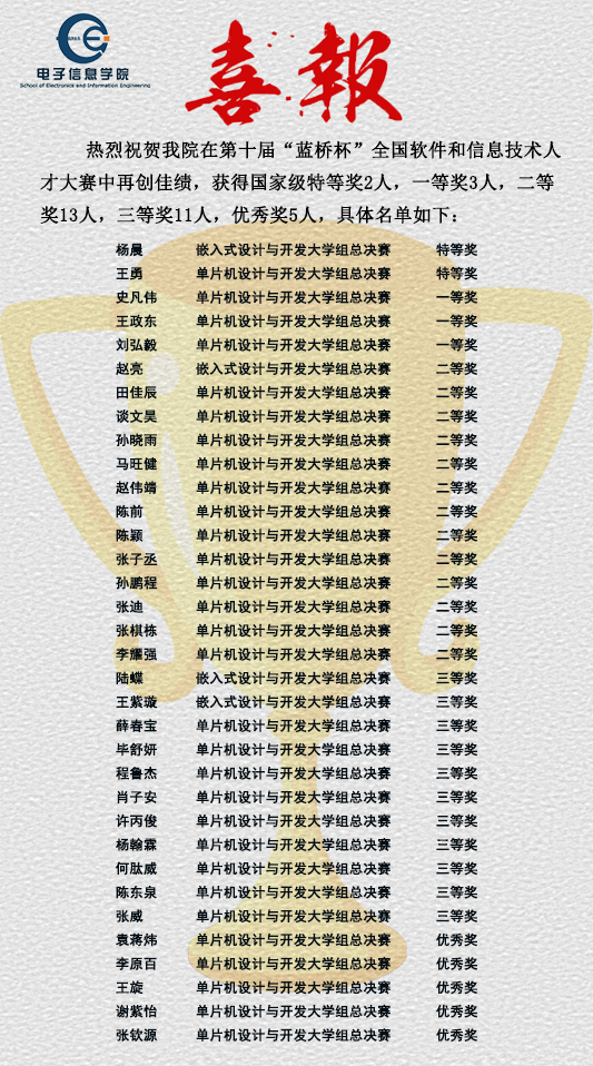 电子信息学院2019年第十届蓝桥杯全国软件与信息技术专业人才大赛决赛获奖汇总