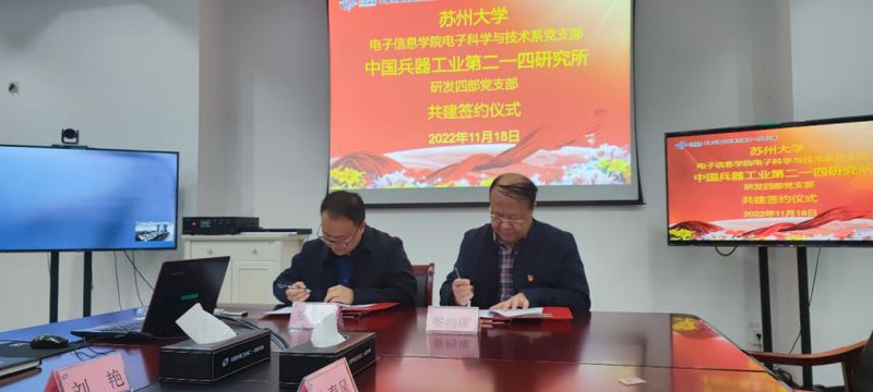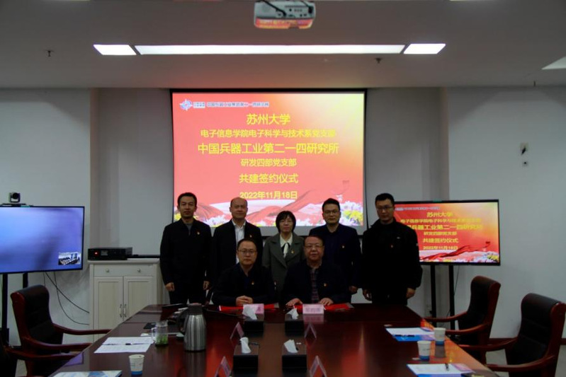 2022年11月18日,学院电子科学与技术系党支部一行前往中国兵器工业第二一四研究所(以下简称214所)苏州研发中心开展支部共建活动。学院党委书记袁冬梅、支部书记徐大诚及电科支部党员参加了此次活动。